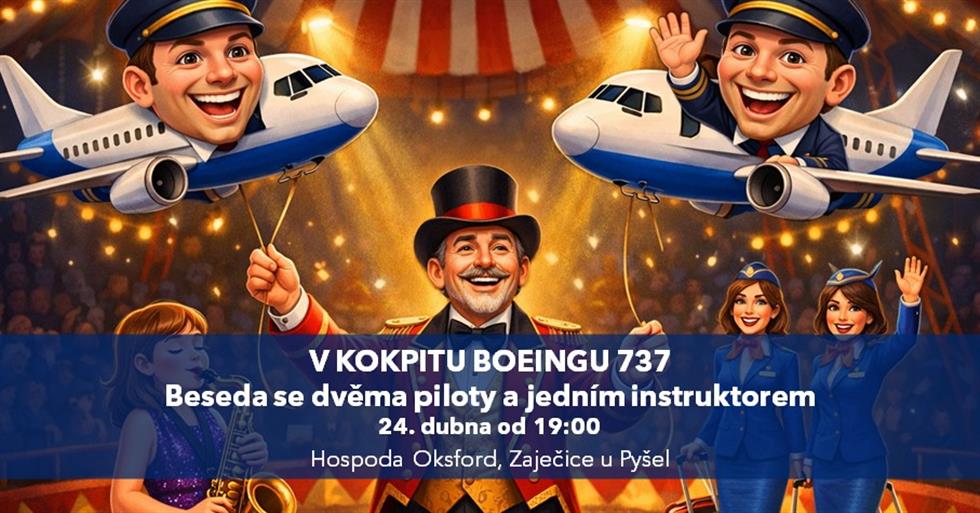 Milými a vtipnými hosty budou kapitáni (a piloti) Boeingu 737 Tomáš Bureš a Jan Juračka, instruktor v letecké škole Roman Tomášek a na saxofon zahraje... tohle bude večer plný překvapení, zábavných i vážných historek (jaké to je mít na palubě... nechte se překvapit), promítání i klaunských skečů.