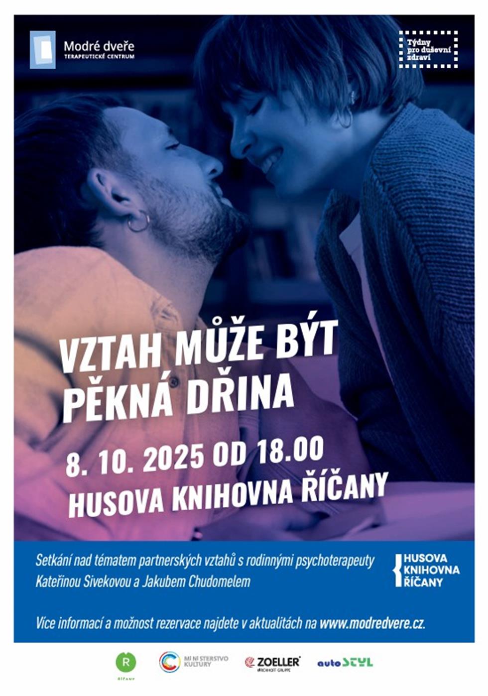 V rámci našeho programu Týdny pro duševní zdraví vás zveme na diskuzní večer s tématem „Vztah může být pěkná dřina“, který vám přiblíží naši zkušení rodinní psychoterapeuti Kateřina Siveková a Jakub Chudomel.