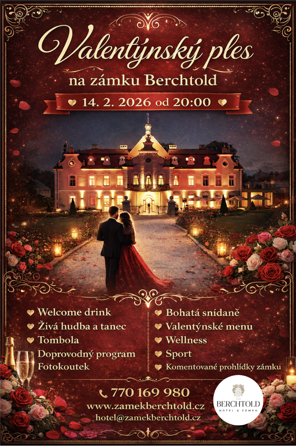 Zveme vás na kouzelný Valentýnský ples, který se uskuteční v romantických prostorách zámku Berchtold.